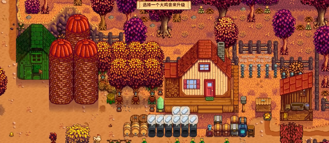 动物养殖为冬季提供了另一种稳定的食物来源。鸡、鸭、牛、羊等动物在冬天依然会产出鸡蛋、牛奶和羊毛,但这些产品的前提是动物们过得舒适。你必须在鸡舍和畜棚内放置取暖器,否则动物的生长和心情都会受到影响。食物方面,冬季野外不再长草,动物们需要依靠干草喂养。你需要提前建造筒仓来储存用镰刀收割的干草,或者在玛妮的牧场购买。将畜棚和鸡舍升级到最高级会解锁自动喂食器,能从相连的筒仓中自动取用干草,这能省去你每天手动放置饲料的麻烦。